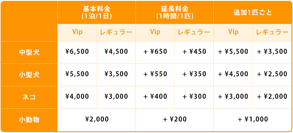 飼い主さまの代わりに、アットホームできめ細やかなサービスでお世話をいたします。